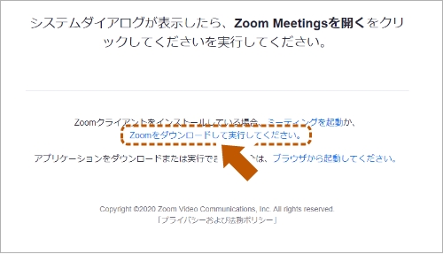 Zoomをお持ちでない場合は、「Zoomをダウンロードして実行してください」を選択します。インストールを実行してアプリを起動してください。